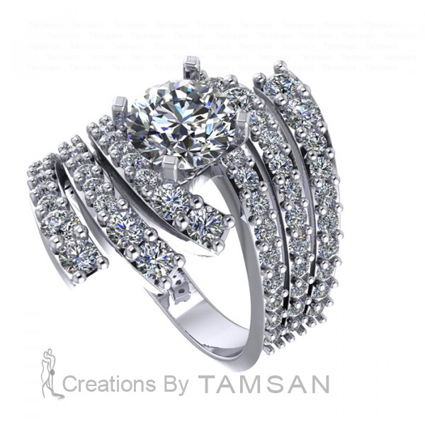 6 Rail Cocktail Side Stone Engagement Ring 2.75Ctw