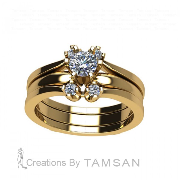 Three Stone Emerald and Taper Baguette Diamond Bridal Set 1.70Ctw