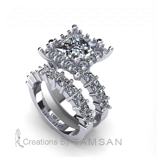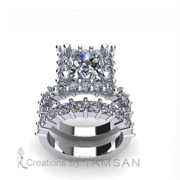 Princess Halo Diamond Bridal Set 4.60Ctw