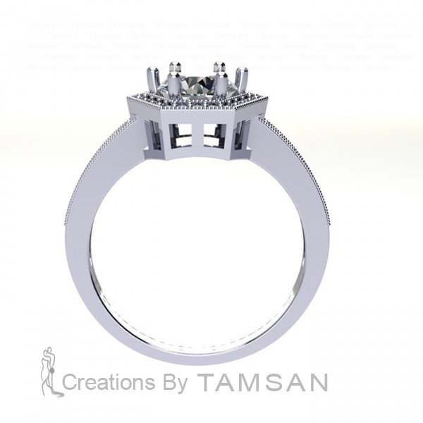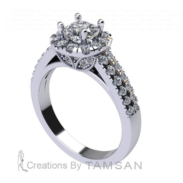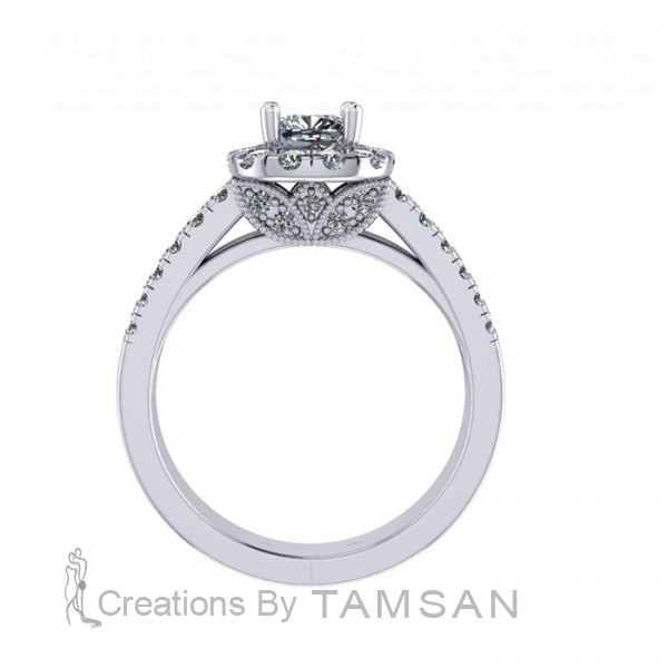 Cushion Halo Engagement Ring with Milgrain Leaf 1.35Ctw