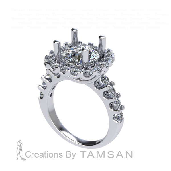 Cushion Shape U Prong Halo Round Cut Engagement Ring 2.60Ctw