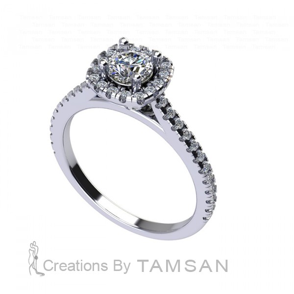Halo Round Cut Cathedral Engagement Ring 0.60Ctw