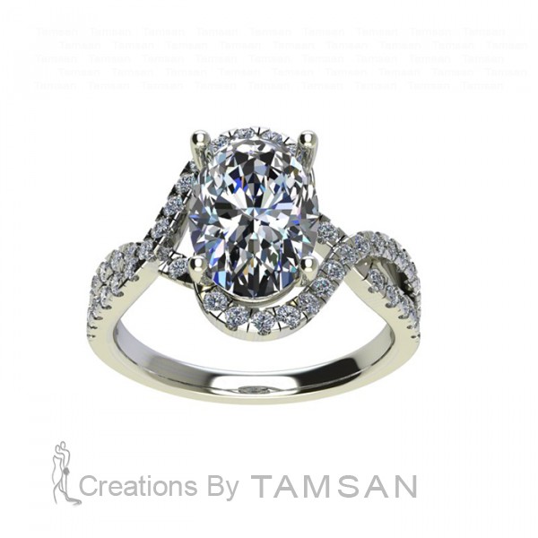 Oval Swirl Halo Engagement Ring 2.95Ctw