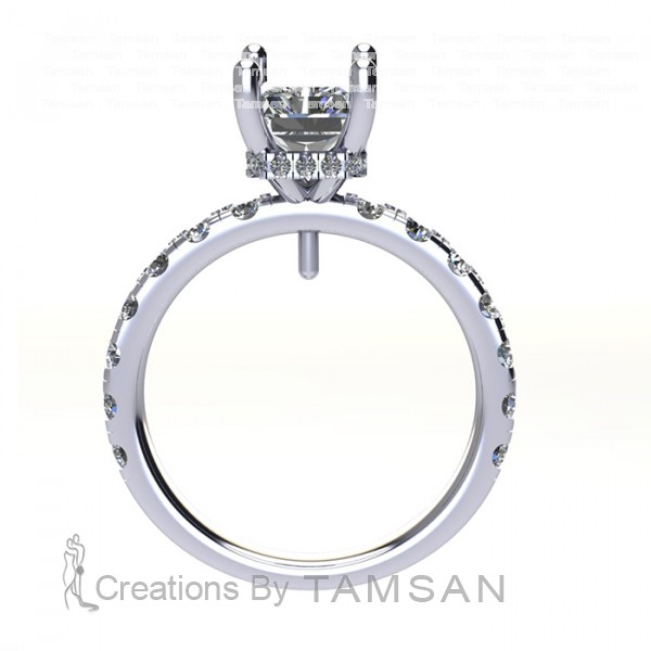 Radiant French Pave Prong Hidden Halo Engagement Ring 2.65Ctw