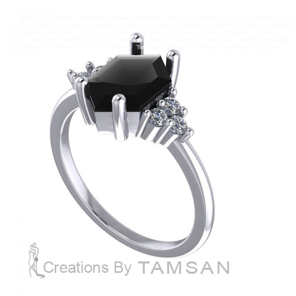 Hexagon Side Stone Engagement Ring 2.20Ctw