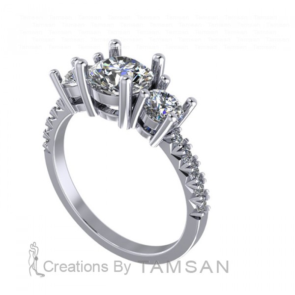 Three Stone Round Cut Engagement Ring 2.60Ctw