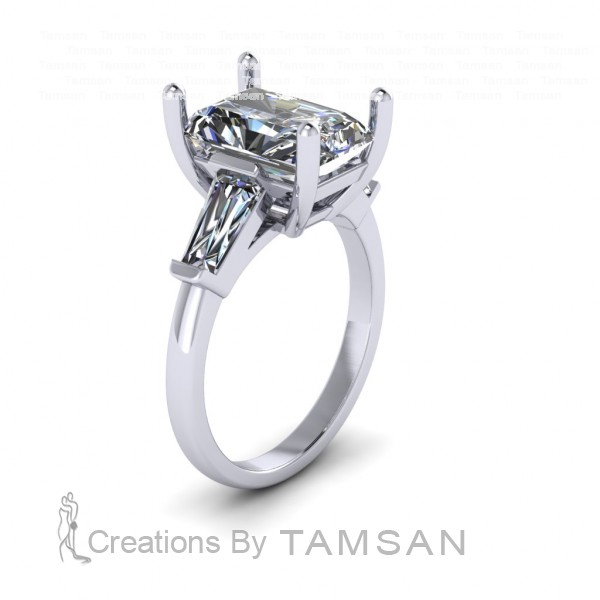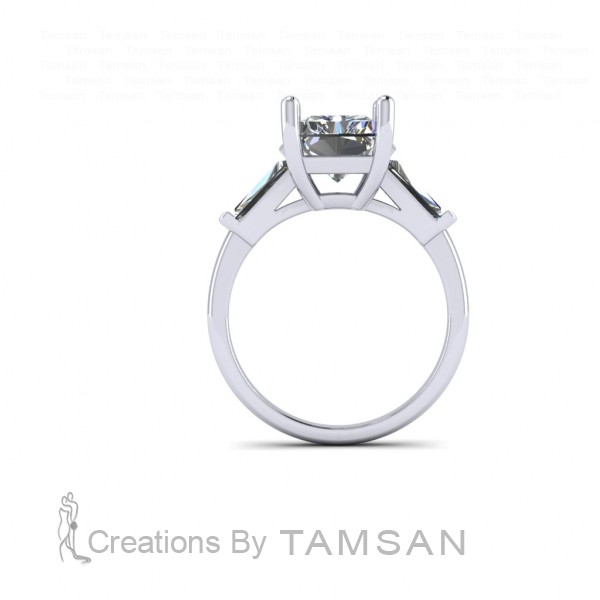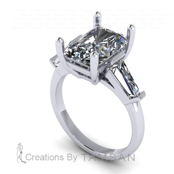 Three Stone Radiant and Tapered Baguette Engagement Ring