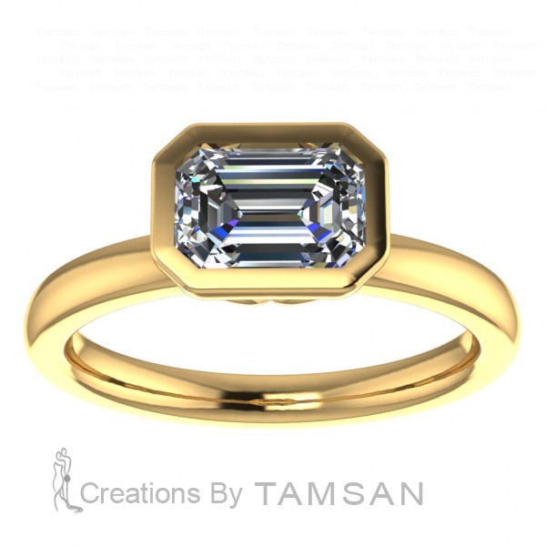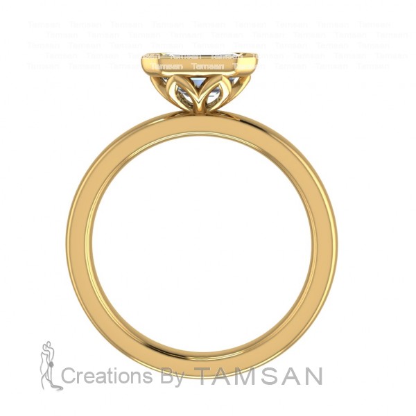 The Emerald Petal Bezel Engagement Ring offers a fresh take on timeless elegance. The emerald-cut center stone is encased in a smooth bezel setting, while delicate petal-inspired details add a soft, romantic touch. A perfect choice for those who appreciate clean lines with a hint of nature-inspired charm.
