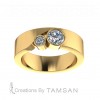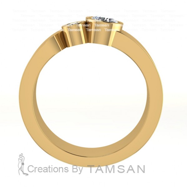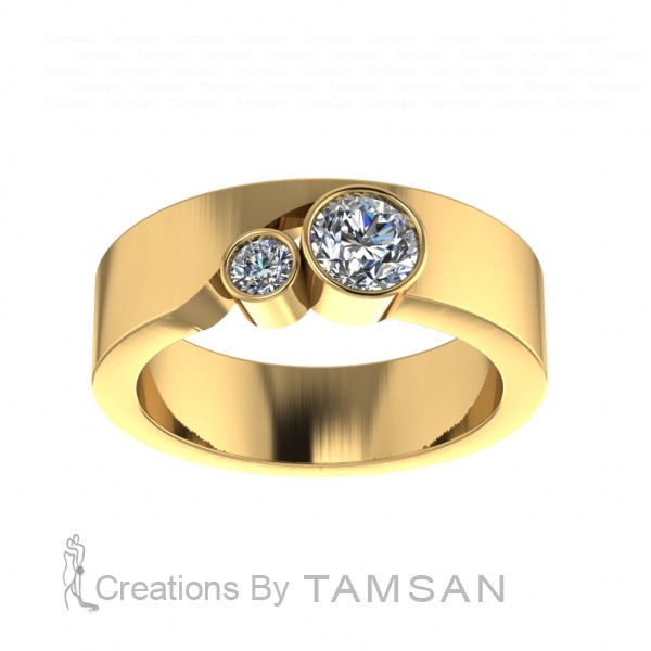 The Two Stone Bezel Band features a sleek and modern design. Two sparkling stones are securely set in smooth bezel settings, creating a balanced and contemporary look. Perfect as a stacking ring or a minimalist statement piece with timeless elegance.