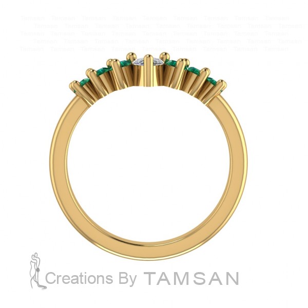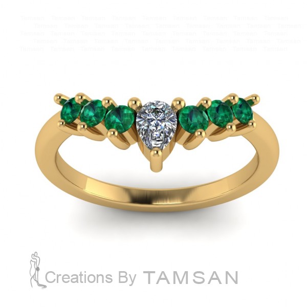 The Curve Round and Pear Band features a graceful arc that beautifully contours the finger, set with a harmonious mix of round and pear-shaped stones. The alternating shapes create a fluid rhythm of sparkle, enhancing the band’s elegant curve. Delicate yet distinctive, this piece is perfect for stacking or pairing with an engagement ring, adding a soft, luminous touch to any look.